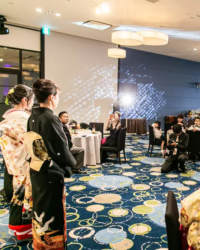 結婚式当日はあなただけの専用着付室をご用意します。よくある披露宴までの利用制限で慌ただしくなる心配もなく、ゆっくりとお過ごしいただけ結婚式を心から楽しむことができます。