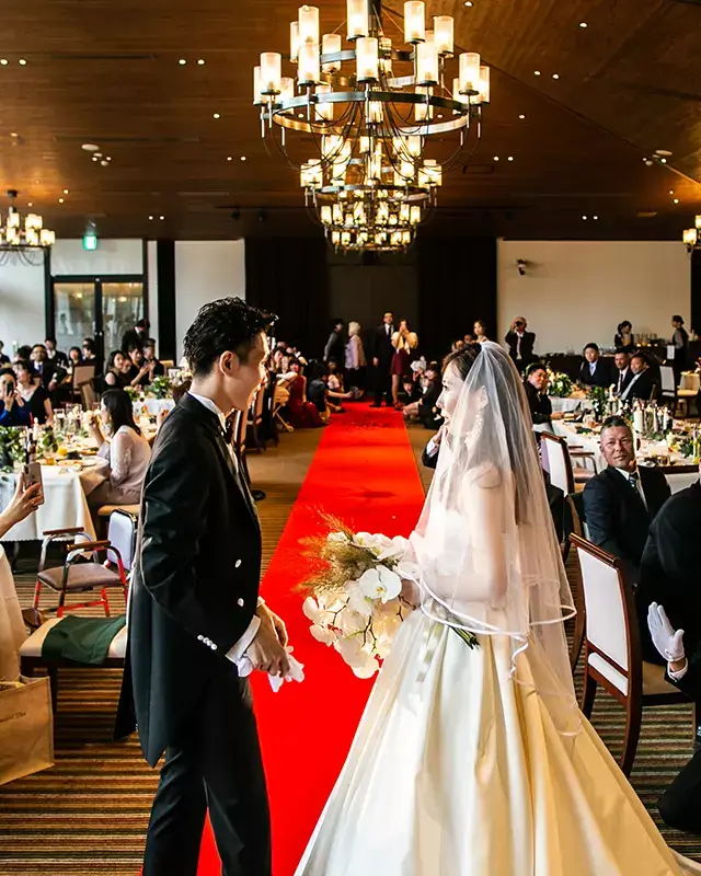 「この瞬間は皆様に見届けてほしい」という想いからバージンロードを最優先したレイアウトに変更。
